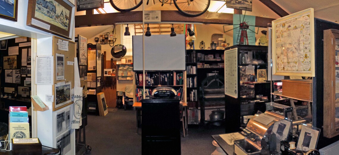 One claim to fame is being the main witchert village. Witchert is the sub-soil of decayed limestone that was used to build so many of the cottages, houses, barns, chapels, and high garden walls that define Haddenham’s conservation area. The museum has one display devoted to witchert and indeed the building itself is constructed of the material.